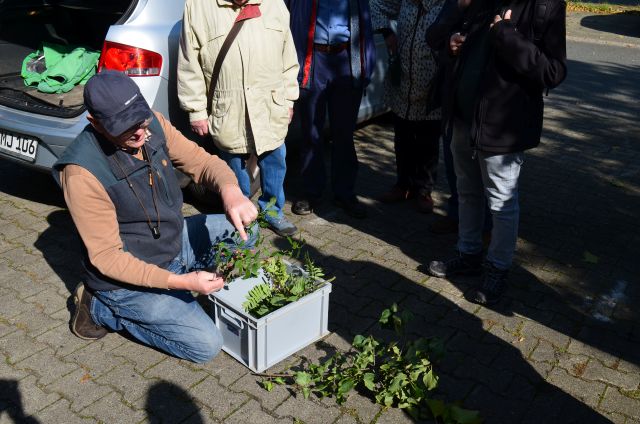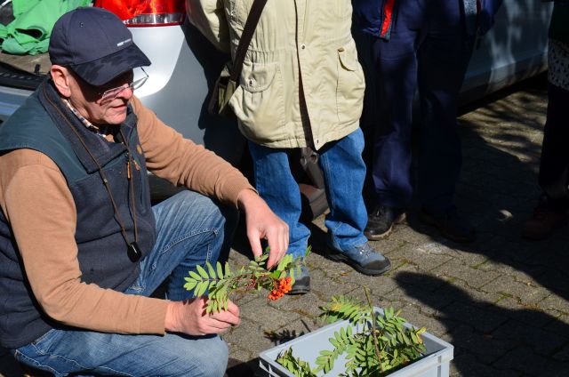 So können die Ahornarten: Berg-, Spitz, und Feldahorn anhand von den Merkmalen Blattshilouette oder auch der Knospenfarben unterschieden werden. Auch auf die Verwendung der verschiedenen Holzarten wurde eingegangen. Zu guter Letzt wurden die Teilnehmer noch von der herauskommenden Sonne belohnt, die die Herbstfarben zum Leuten brachte.