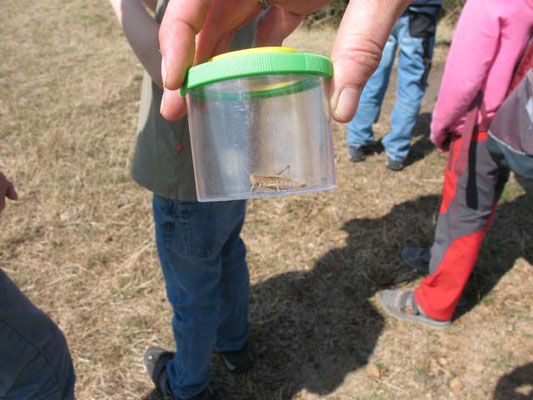Außerdem gab es sehr viele braune und grüne Heuschrecken, die sich kaum zum Beobachten im Becherlupenglas einfangen ließen.