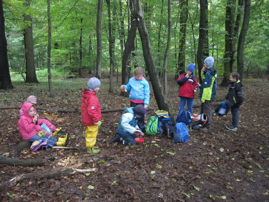 Beim Eichhörchenspiel wurden Nüsse versteckt und mussten nach anderthalb Stunden wieder gesucht werden. Dabei wurden einige Verstecke offensichtlich von anderen "Eichhörnchen" entdeckt und geplündert. Mehrere Verstecke sind offensichtlich doch besser, wenn man am Ende nicht ganz mit leeren Händen dastehen will.